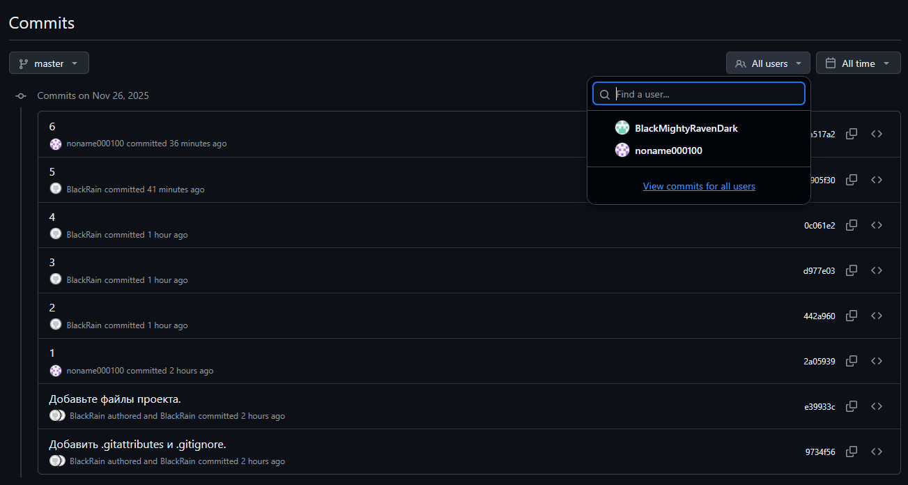 Потом я месяц делал коммиты. Иногда пушил сразу, иногда не сразу. Вчера зашёл на гитхаб, чтобы посмотреть, как оно вообще выглядит. А там какая-то странная хрень. Все коммиты, которые я сделал при введённой почте